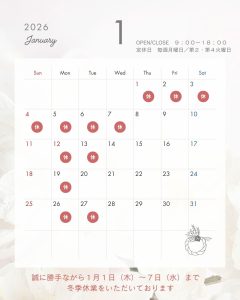 1月1日(木)~1月7日(水)まで冬季休業をいただいております