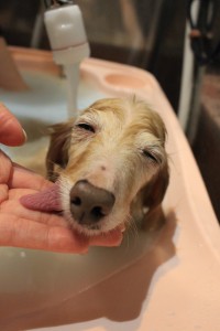 マイクロバブルでオヤスミ中のこつぶくん![]()