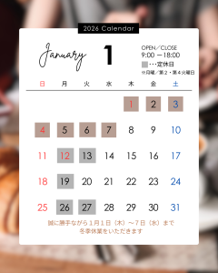 1月1日(木)~1月7日(水)までの7日間冬季休業となります。